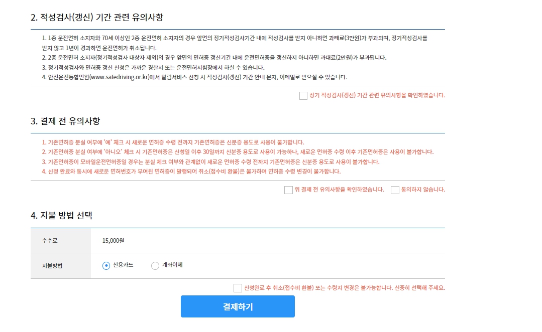 3. 정보확인을 하고 면허증 종류 및 수령지를 선택합니다.