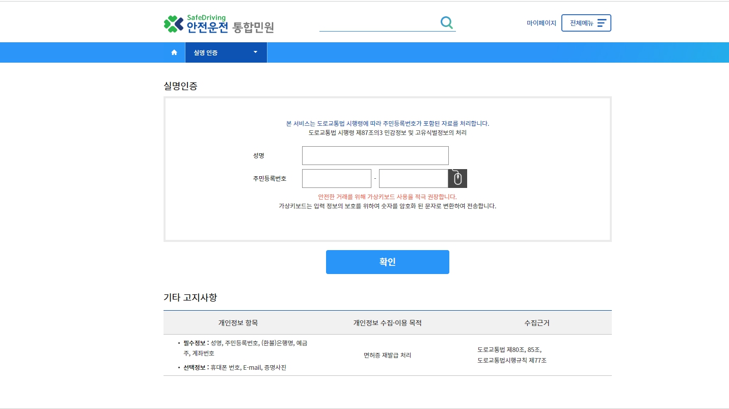 2. 본인인증 절차를 완료 후 본인 운전면허 정보를 확인합니다.