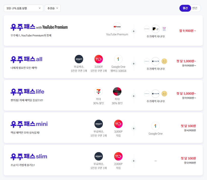✔ 최초 가입 시 첫 달 1,000원 할인